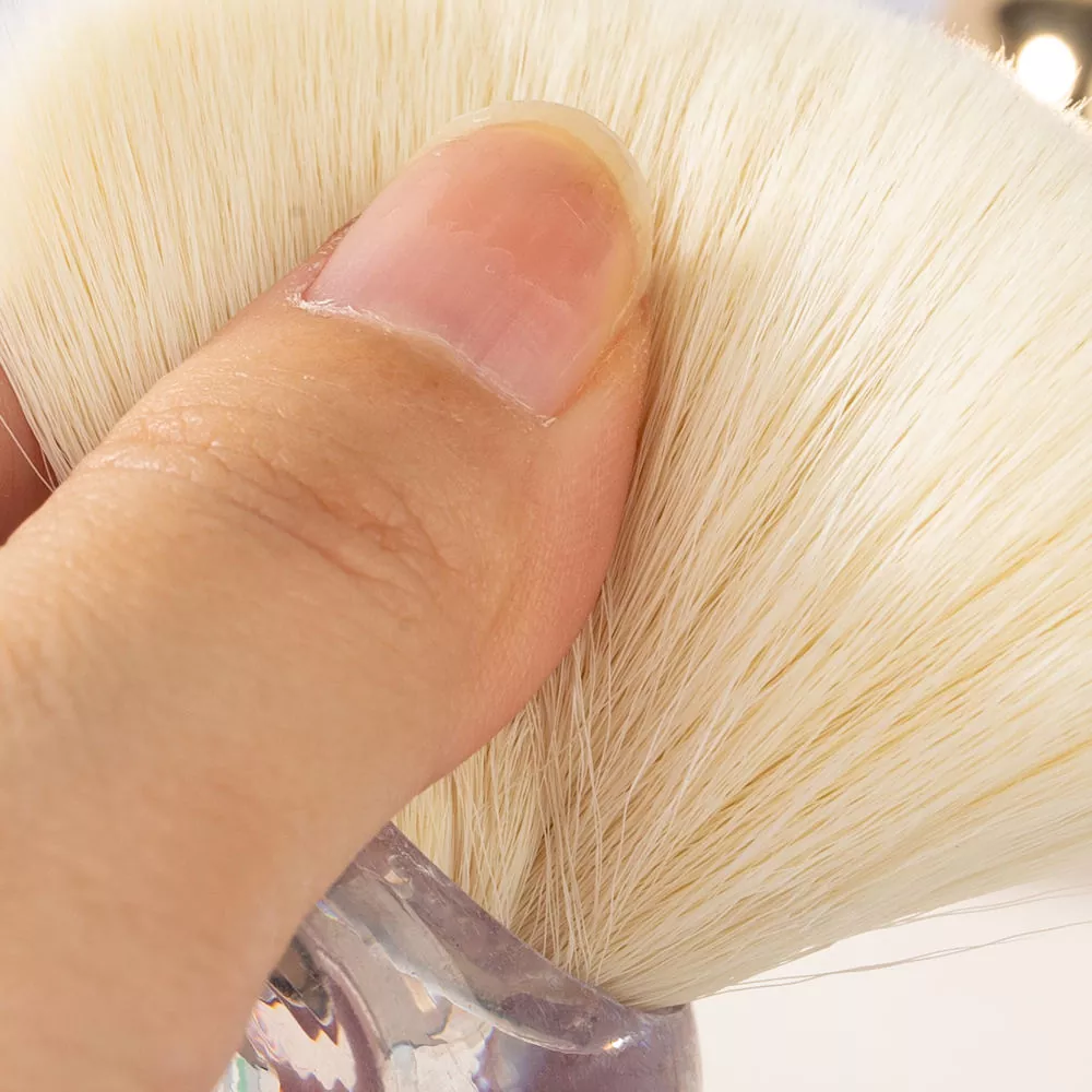 Blush Single Makillaje Eskuila honek zurda sintetiko leun eta leunak ditu eta helduleku trinko eta ergonomikoa ditu. Hauts eta krema gorritzeko aplikazio naturala ematen du, diseinu dotorearekin edonon erabiltzeko eta makillaje profesionalerako itxura aproposa duena.