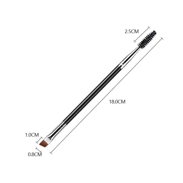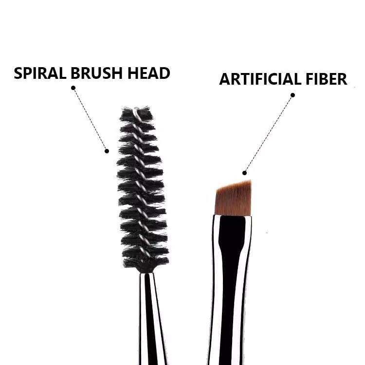 Eye Makeup Brush Single mutur bikoitzeko tresna bat da, zurda sintetiko leunak dituena. Erabili eskuila angelua bekainak zehaztasunez definitzeko eta eyeliner-a aplikatzeko, gero erabili spoolie bekain ilea garbitzeko eta nahasteko, begi itxura natural eta leundu bat lortzeko.