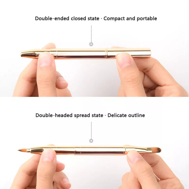 Ezpain bakarreko makillaje eskuila honek mutur bikoitzeko diseinua du zurda sintetiko leunekin. Ezpainen lerroak marrazteko punta zehatza eta kolorea betetzeko eskuila laua du, metalezko helduleku dotore batekin, erraz heldu eta edonon erabiltzeko.